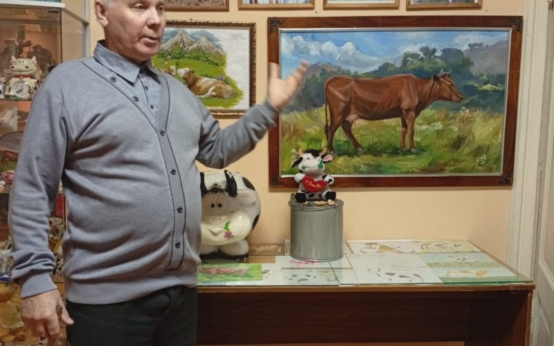 В Горбатове особая атмосфера и немало достопримечательностей – от старинных купеческих домов с резными фасадами до городского кладбища, где действующая церковь и сохранились родовые склепы. В одном из них похоронен почетный гражданин города фабрикант Григорий Смолин, производивший веревки и канаты и ставший прототипом купца Смолокурова в романах Мельникова-Печерского «В лесах» и «На горах». Но не только канатным производством прославился Горбатов, здесь выпускали медные самовары с заводским клеймом, в которых можно было заваривать чай в специальном отсеке с отдельным краном. Производили слесарные изделия, выращивали коров редкой красногорбатовской породы, а летом в садах поспевала знаменитая горбатовская вишня, за которой приезжали купцы из Москвы и Петербурга. Обо всем этом гостям города всегда готов рассказать руководитель краеведческого музея Анатолий Савинов. Музей расположен в одном из купеческих домов. Правда, прежде чем переехать сюда, он пять раз сменил свой адрес. В этом здании после Великой Отечественной войны размещался детский дом, потом детсад и школа глухонемых. Ну а теперь первый этаж занимает музей. Его нынешнему руководителю пришлось все обустраивать самому – в помещении были лишь голые стены, и надо было не просто разобрать сваленные в груду экспонаты, но и разместить их, учитывая тематику и соблюдая хронологический порядок. Одних только документов, рассказывающих о прошлом уездного города, не счесть. Музейные коллекции постоянно пополняются новыми находками. – Наша изюминка – музей коров, – приглашает Анатолий Сергеевич в необычный зал, где на стеклянных стеллажах разместилось множество статуэток коров разных пород и размеров. Одних он покупал сам, часть подарили жители и гости города. – Вот эта картина с алмазной вышивкой – подарок майора полиции Яны Горбуновой из Благовещенска, – показывает он картину, где изображена буренка с теленочком. Говорят, этот музей коров – единственный в нашем регионе, ну а в стране есть еще только в Воронежской области. В Горбатове он создан не случайно. Именно здесь в середине XIX века в поместье графа Шереметева была выведена новая порода коров – красногорбатовская, которая пользовалась большим спросом за высокую жирность молока и неподверженность болезням. И поныне на павловской земле разводят таких буренок в ЗАО «Абабковское».