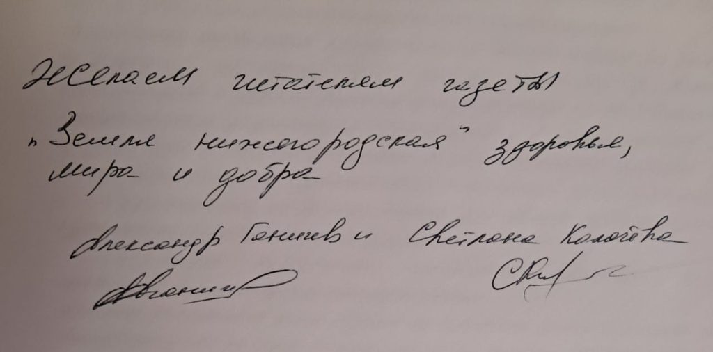 Колеся по стране, продюсерский центр «Русская гармонь» открыл для себя нашу область как уникальный и, пожалуй, самый богатый край на гармонистов и талантливых людей. Руководители центра убеждены: куда ни приедешь в регионе, везде найдётся виртуоз или просто увлечённый игрок на гармони. Гастрольные маршруты цен‑ тра по нашей области – это свое‑ го рода паломничество по местам силы русской гармони. В этот раз, например, ездили в Вознесенское, где коллектив всегда ждёт Юрий Галихин, медработник по профессии, преданный гармонист, который всегда собирает вокруг себя других музыкантов. Непременно посещают и Семё‑ нов, где более десяти лет назад был организован клуб «Гармошкины посиделки» под руководством Николая Цветкова. В посёлке Воскресенское проживает молодой, но уже известный Никита Ронжин, которого Александр Ганичев знает с совсем юного возраста. Никита впервые попал на телевидение в передачу «Гости» к Валерию Сёмину, а затем стал участником программы «Гармонисты России», которую Александр Ганичев ведёт на канале «Жар-птица» уже семь лет. Бывают и в Кстове, где живёт Василий Гордеев, и в Шахунье, где дом Игоря Навалихина. Александр и Светлана пользуются любой возможностью, чтобы обратиться к жителям и организаторам со словами: «Пожалуйста, приглашайте нас с концертами, и мы с удовольствием приедем в любое хозяйство, в любой уголок, в самую дальнюю деревню. Мы сыграем и споём программу по вашим пожеланиям – будь то традиционные наигрыши или наши авторские песни». Артисты признаются, что Нижегородская губерния для них – место силы. Этот край, по наблюдениям руководителей, обладает удивительной способностью сохранять певческие традиции, несмотря на свою многонациональность. Особую роль в судьбе «Русской гармони» сыграли встречи с единомышленниками. Судьба свела Александра и Светлану с Николаем Талановым, автором программы «Земля и люди». Это знакомство, начавшееся со съёмок концертов, переросло в крепкую дружбу и творческий союз. Когда выяснилось, что у программы «Земля и люди» нет своей песни, Александр и Светлана решили восполнить этот пробел. Так появилась одноименная песня: стихи написал Александр Николаевич, а музыку – Светлана Михайловна. Сегодня это произведение вышло далеко за рамки телевизионной заставки, превратившись в гимн российского земледельца. Авторы признаются, что при написании не рассчитывали на такой масштаб, но песня получилась пронзительной и по-настоящему всероссийской. Для Александра Ганичева каждое её исполнение – это поклон тем, кто трудится на земле. Он с горечью отмечает, как за последние десятилетия изменились общественные ценности: если во времена их родителей выйти замуж за механизатора считалось престижным, то сегодня рабочие профессии на селе часто недооцениваются.